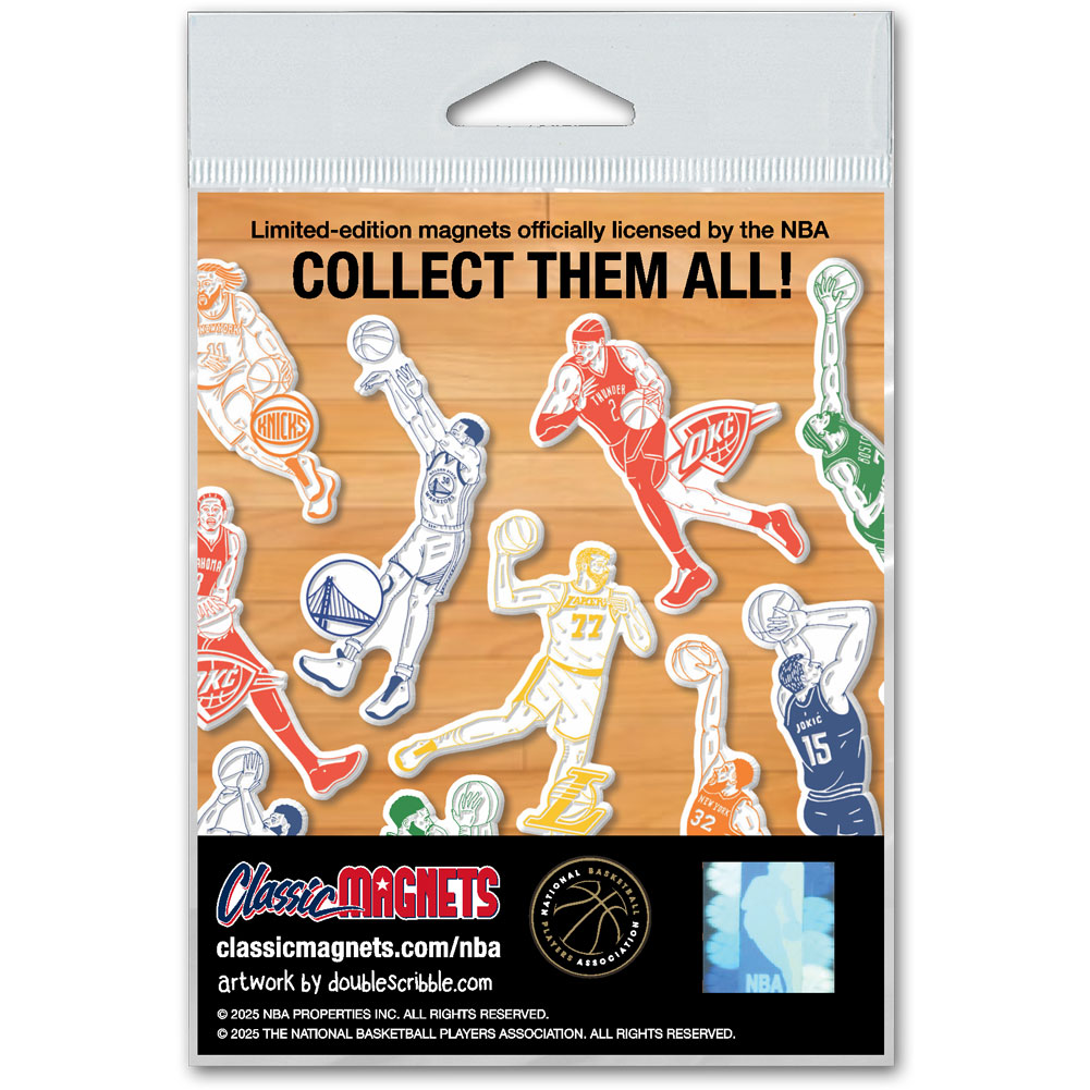 Celebrate New York basketball with the Jalen Brunson Player Magnet from Classic Magnets. This original Double Scribble illustration captures Brunson’s dynamic play and clutch performances. Since arriving in 2022, he has become an All-Star and the driving force behind the Knicks’ return to playoff success.