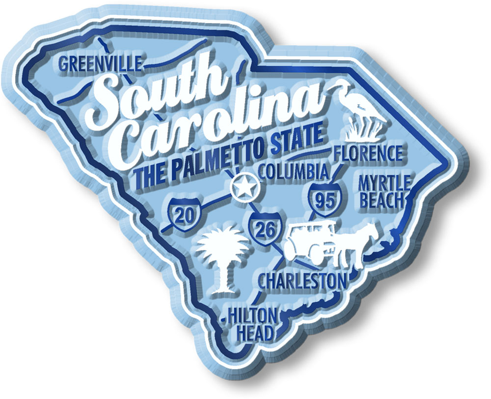 Our South Carolina State Premium Map Magnet is an exciting new variation on the popular state collector's magnet. Measuring four (4) square inches, this memorable magnet is larger and more colorful than the industry standard. The design features the major highways and relevant icons for the state of South Carolina. The State Premium magnets are made of flexible molded rubber and are extremely durable. Made in the USA.