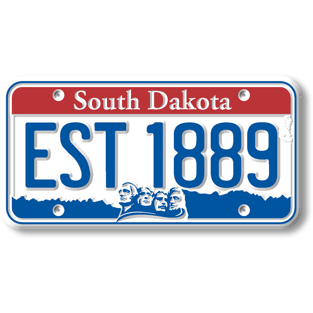 - Design: Embossed license plate design with Mount Rushmore detail and year of statehood.