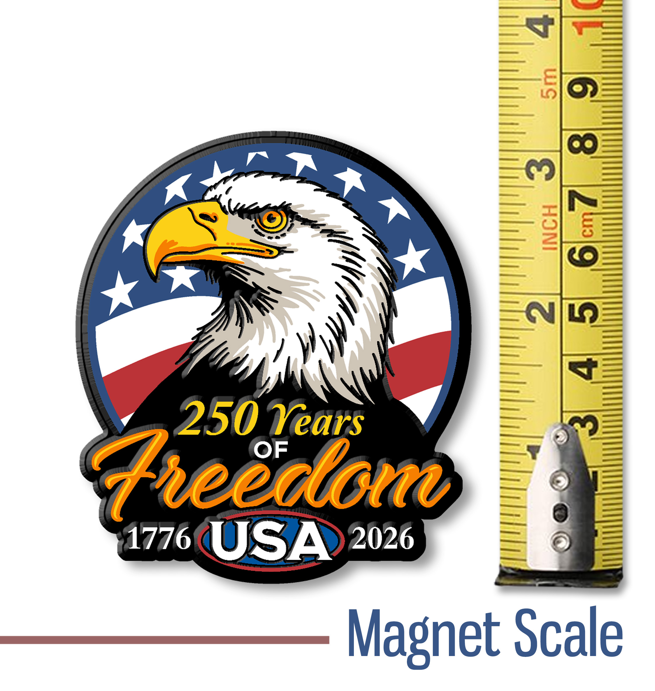 All of our magnets are 100% made in the USA, ensuring top-quality craftsmanship and design. A striking collectible for celebrating freedom, patriotism, and America’s 250-year legacy.