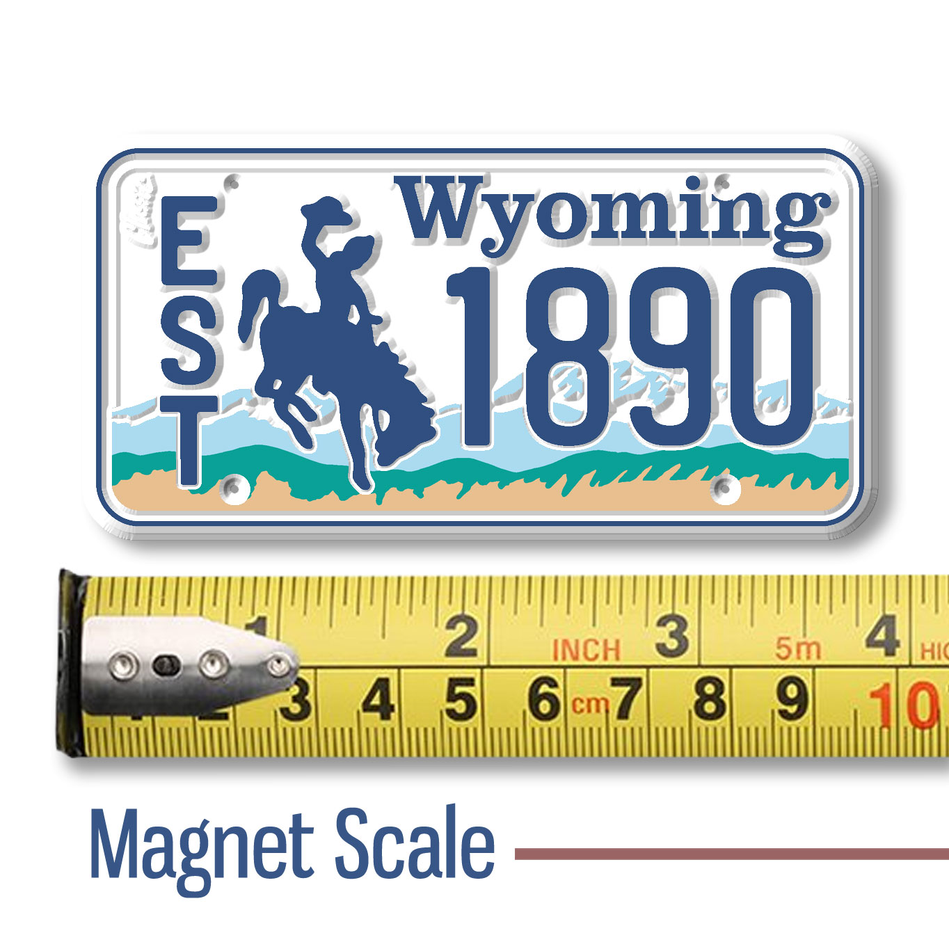 All of our magnets are 100% made in the USA, ensuring top-quality craftsmanship and design. Perfect for any refrigerator or magnetic surface, this Wyoming License Plate Magnet is a great gift or collectible item.